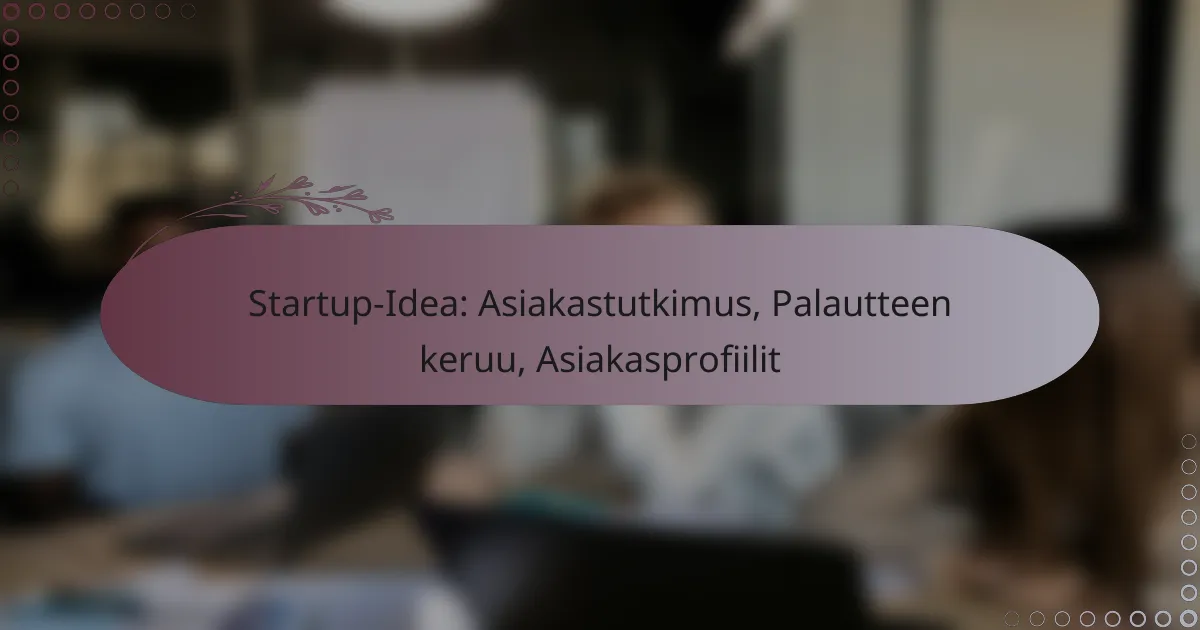 Asiakastutkimus on olennainen prosessi, jossa kerätään ja analysoidaan tietoa asiakkaista ja heidän tarpeistaan, erityisesti startup-ympäristössä. Tehokas palautteen analyysi auttaa ymmärtämään asiakkaiden odotuksia ja parantamaan tuotteita, mikä tukee liiketoiminnan kehittämistä. Käyttäjäpalautteet tarjoavat arvokasta tietoa asiakaskokemuksesta, mikä voi johtaa kilpailuedun saavuttamiseen ja asiakastyytyväisyyden parantamiseen. Mitkä ovat asiakastutkimuksen keskeiset käsitteet? Asiakastutkimus tarkoittaa prosessia, jossa kerätään ja analysoidaan tietoa…
